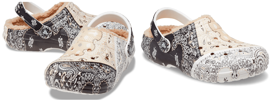 포근한 플리스 안감과 스타일이 돋보이는 반다나 프린트 그래픽 디자인으로 된 제품입니다. 안감은 브라운 계통의 털이 부착되어 있어 외관 디자인과 조화를 이룹니다. 가벼운 무게와 편리한 착용 그리고 디자인으로 어디서나 멋스럽게 신을 수 있습니다. 크록스 공식 홈페이지에서 구매 가능합니다.