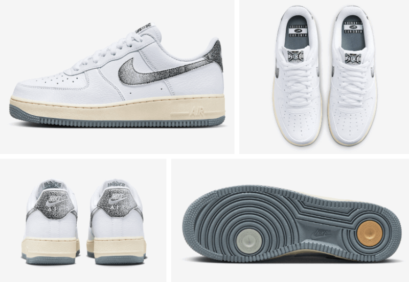 마치 힙합이 시작되던 1970~80년 대에 사놨던 에어포스 화이트 & 블랙을 2023년이 되어서 찾아 꺼내본다는 스토리를 적용시킨 듯 보입니다. 작년 하반기 마니아들을 설레게 했던 나이키 에어조던 1 '시카고' 로스트 앤 파운드와도 컨셉을 같이 하는 부분이라 생각됩니다.